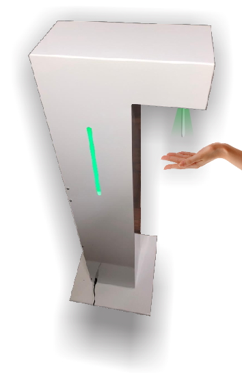 Tótem dispenser automático de alcohol al 70% automático para evitar contaminación por contacto.